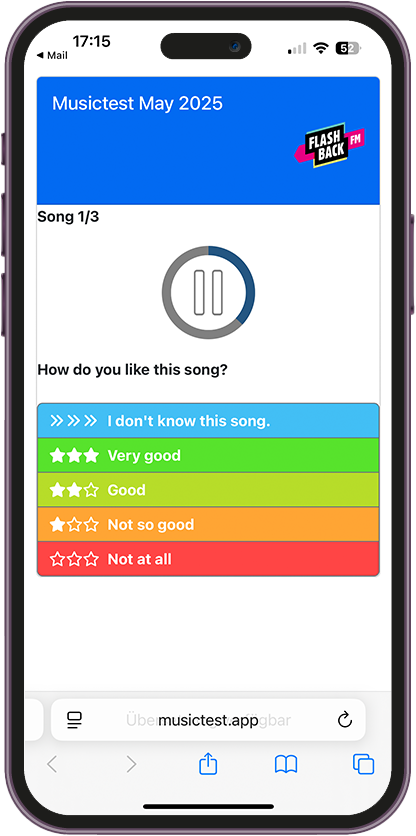 With musictest.app, radio stations can easily build their own music panel and regularly gather listener feedback with just a few clicks. Using a standardized and proven system, you can test new songs, optimize your back catalogue, or select the right tracks for themed days.