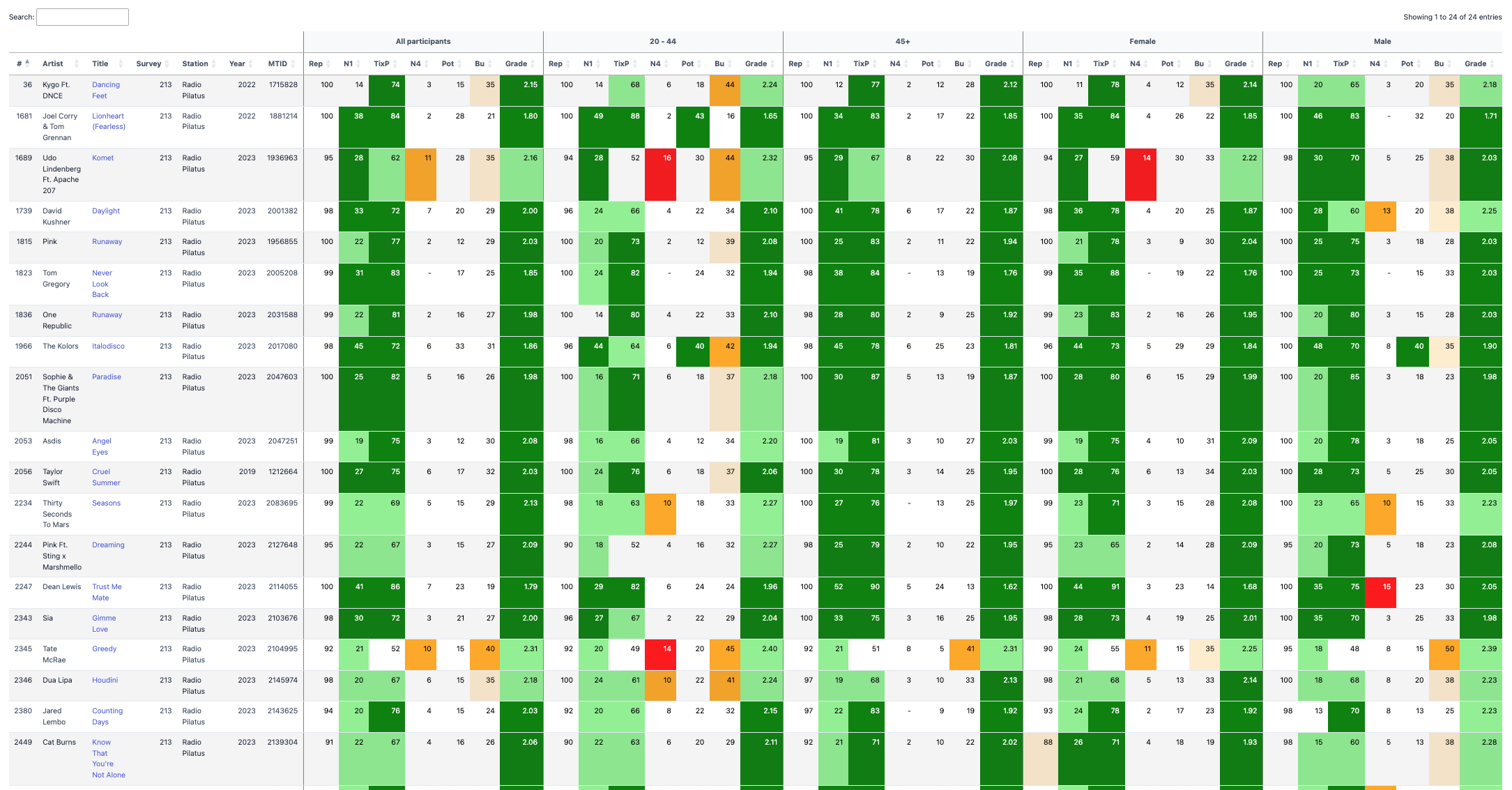 Drill down into results by age and gender, track songs over multiple test rounds, run parallel surveys, and more. Our flexible reporting tools give you the deep insights you need - fast.